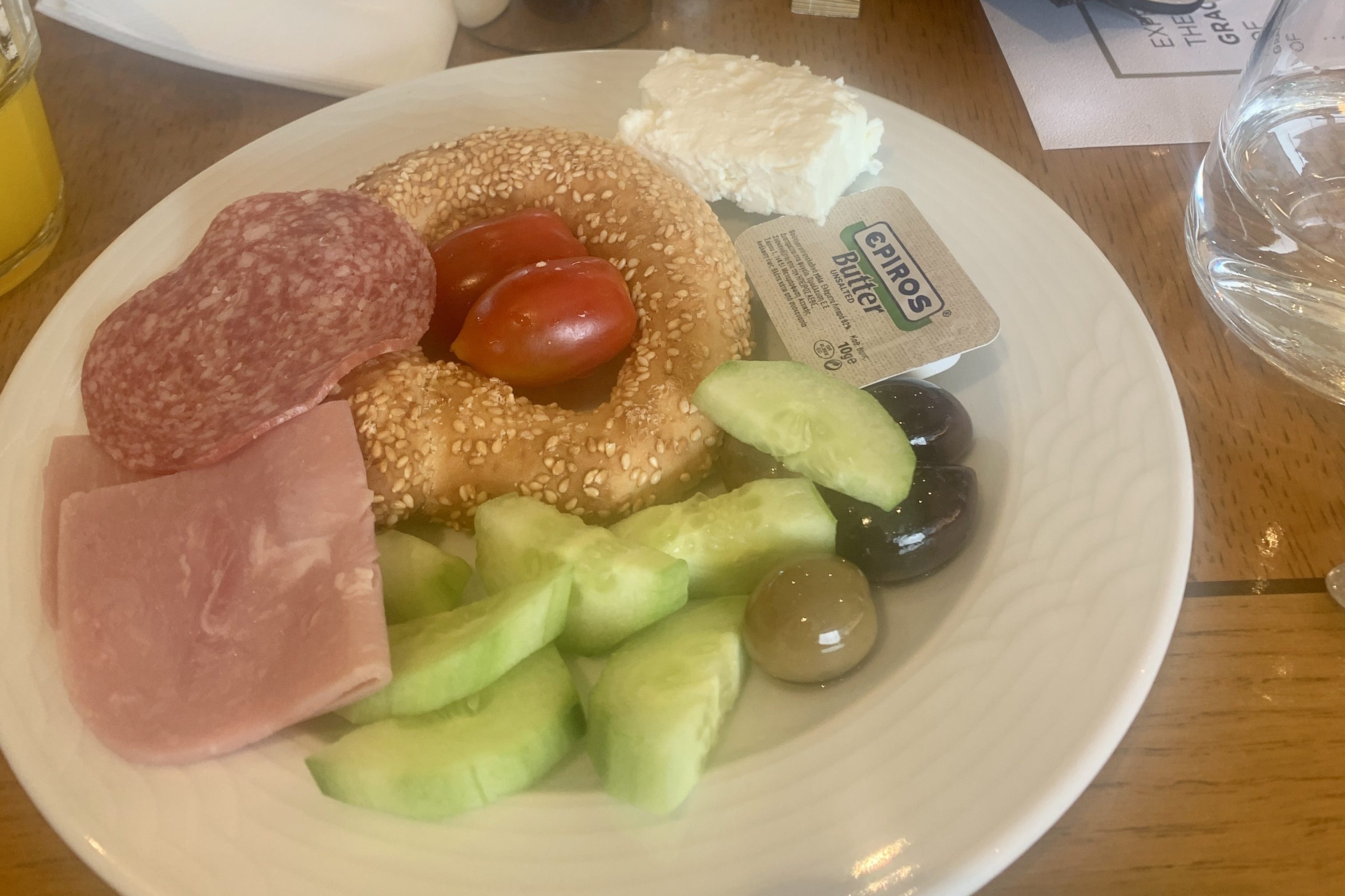 Koulouri, a popular Greek breakfast item, consists of sesame-covered bread rings. These can be found at small street carts or as part of hotel breakfast buffets in cities like Athens. While it may not be everyone’s top pick, trying koulouri at least once is a staple experience in the Greek breakfast scene. I encountered koulouri frequently, including at the Elektra hotel in Athens.